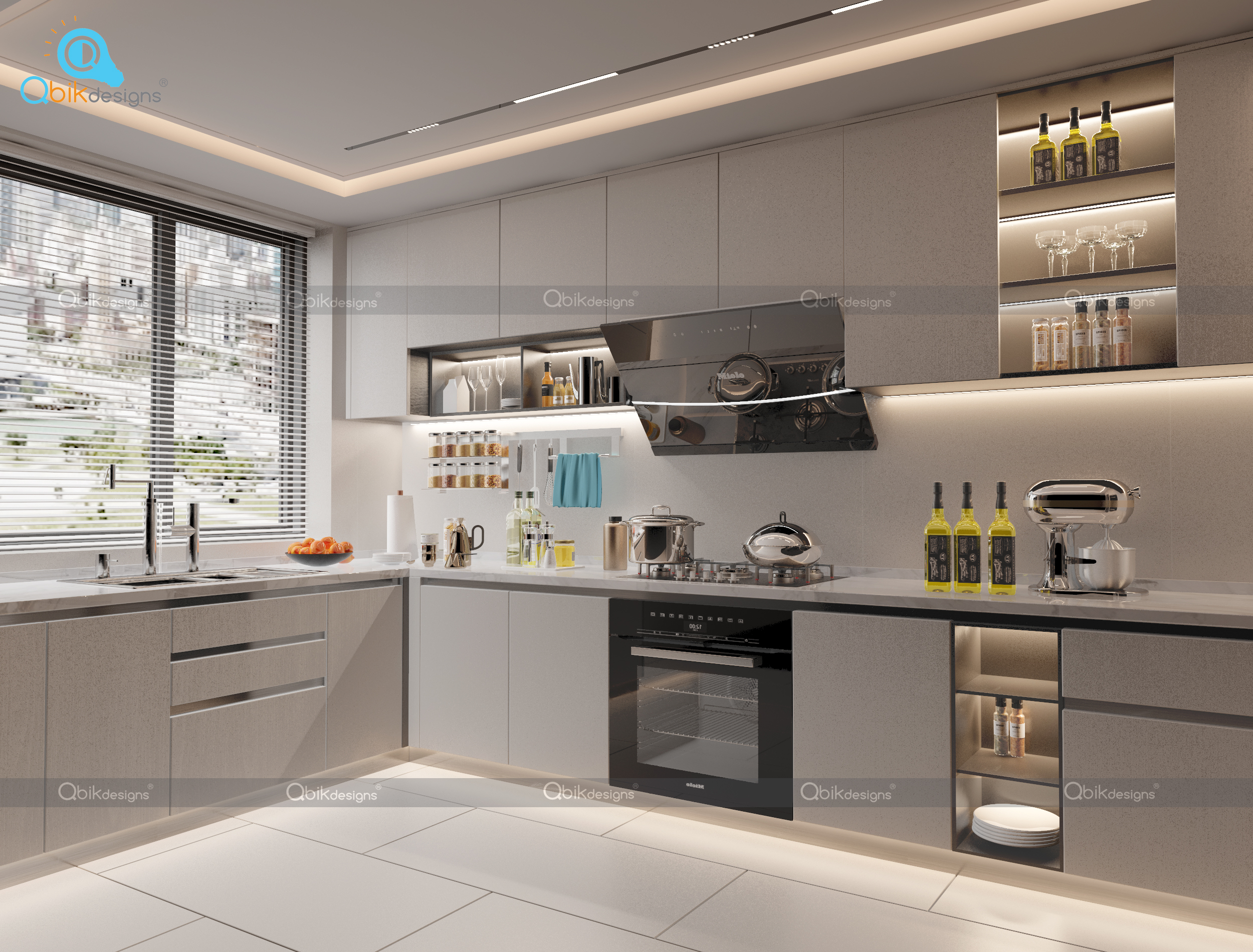 Experience modern elegance and smart functionality with Qbik Designs — where every kitchen is crafted to inspire, with sleek finishes, integrated storage, and cutting-edge appliances.